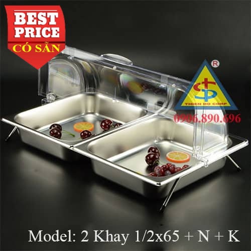 + 2 khay buffet GN 1/2, trong đó 2 khay với chất liệu: inox, sứ trắng, nhựa mica trong suốt