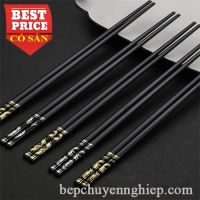 Đũa nhựa đen 27.5cm khảm rồng vàng-rồng trắng cao cấp
